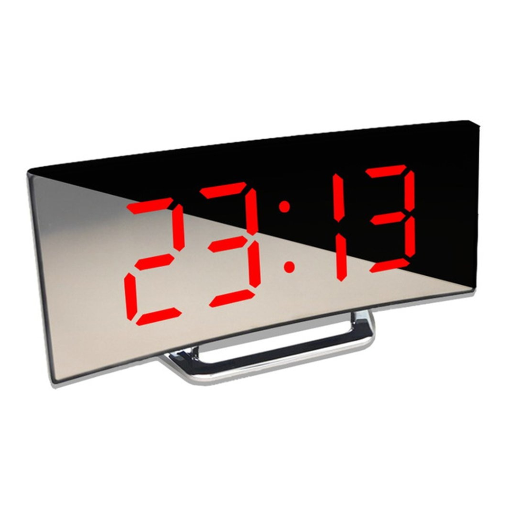 Ceas de masa tip oglinda Macvi® , model DT-6507, ecran LED curbat, afisare temperatura, Rosu