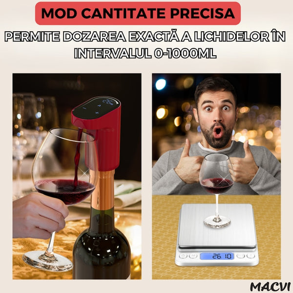 Acest dispozitiv asigură o dozare rapidă și fără efort, păstrează aroma vinului și a altor baăuturi, și este ideal pentru orice locație, fiind superior altor produse.