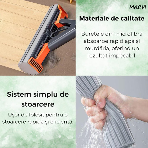 Acest mop inovativ face curățenia rapidă și eficientă, economisind timp și efort.