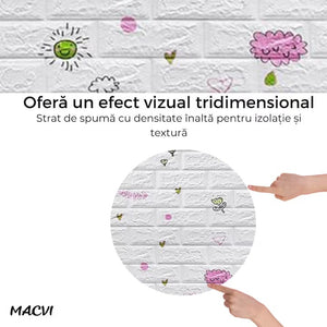 Cu tapetul autoadeziv 3D, ai parte de un decor inovator, simplu de aplicat și de intreținut. Transformați-vă locuința rapid și cu stil!