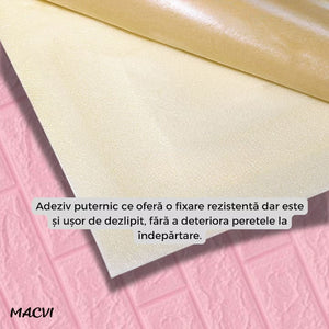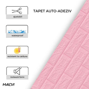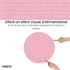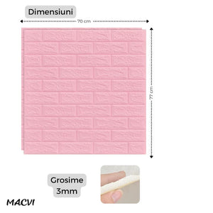 Tapet 3D Autoadeziv, Macvi®, dimensiuni 70x77,Model Caramida Roz, acopera 5.3 metri patrati, este rezistent la apa si ofera un design modern oricarui spatiu