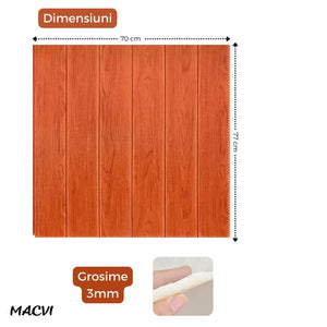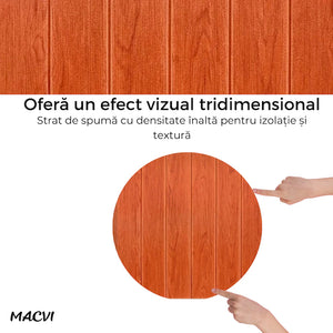 Tapet 3D Autoadeziv, Macvi®, dimensiuni 70x77, Model Panou Lemn Orange, acopera 5.3 metri patrati, este rezistent la apa si ofera un design modern oricarui spatiu