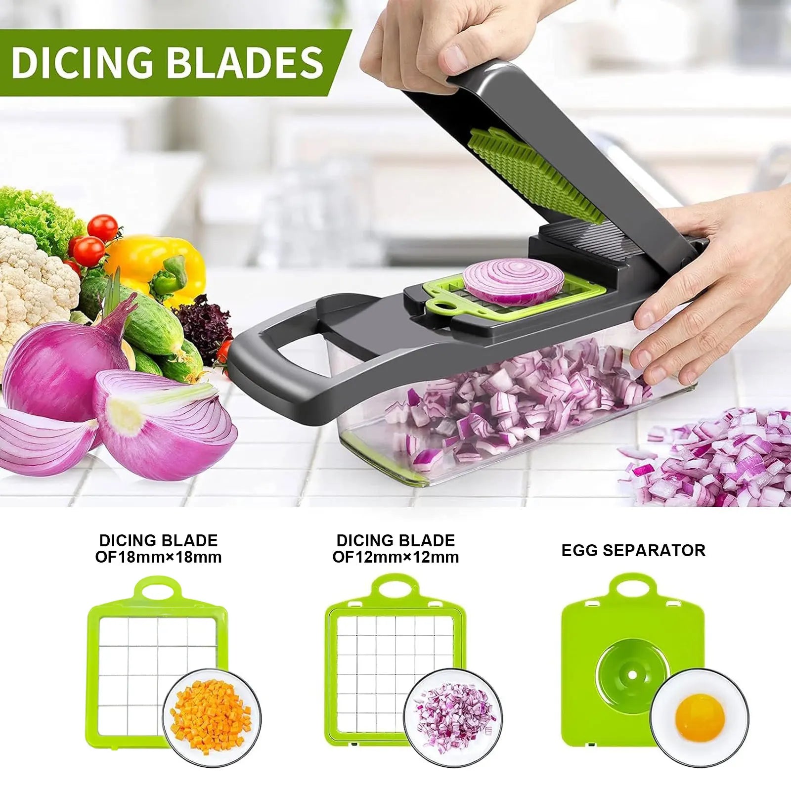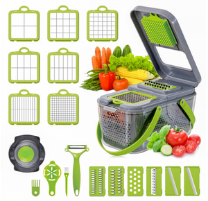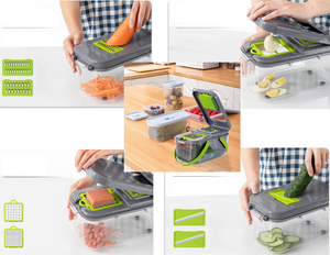 Cu Tăietorul de Legume Multifuncțional, poți uita de tăierea manuală. Acest ajutor util îți permite să tai, feliezi și răzuiești cu ușurință orice legumă sau fruct fără să plângi sau să te tai. Datorită lamelelor din oțel inoxidabil, ai parte de tăieturi precise și rapide. Construcția sigură și ușor de curățat face ca fiecare sesiune de gătit să fie un adevărat moment de plăcere.