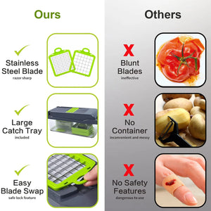 Încearcă Tăietorul de Legume Multifuncțional fără niciun risc. Dacă nu ești complet mulțumit în 14 de zile, primești banii înapoi. O investiție sigură pentru o bucătărie modernă.